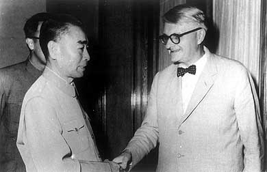 英國學(xué)者李約翰博士(右)受到周恩來總理接見