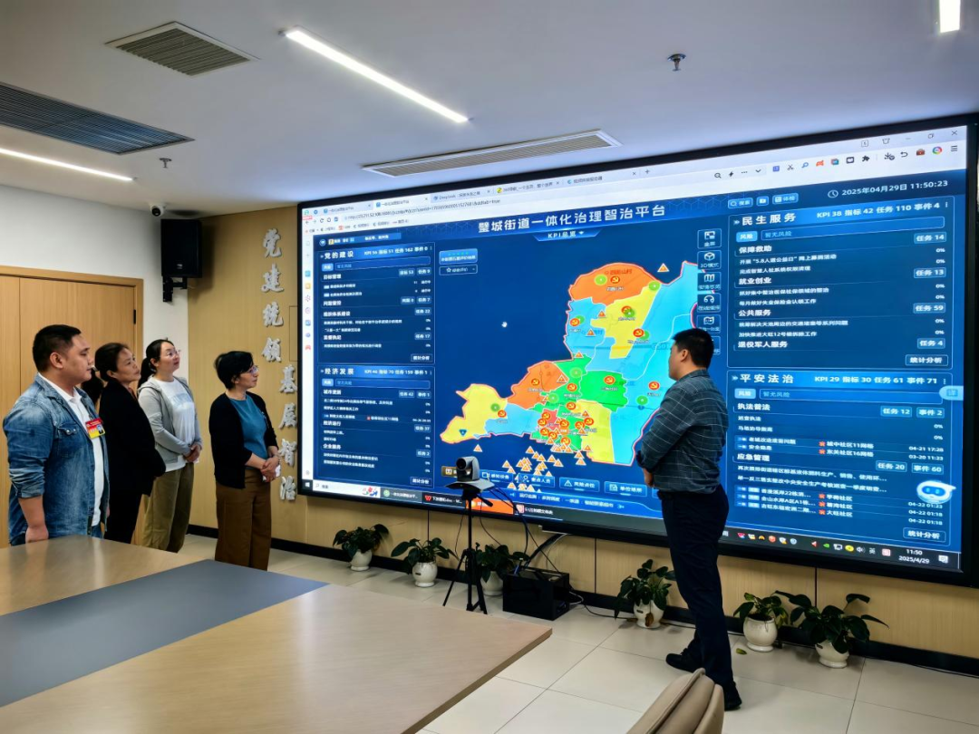 視察組一行走進璧城街道基層治理指揮中心,對指揮中心規(guī)范化建設(shè)、“141”基層智治體系運行、網(wǎng)格事件協(xié)同閉環(huán)處置等情況進行了詳細了解。