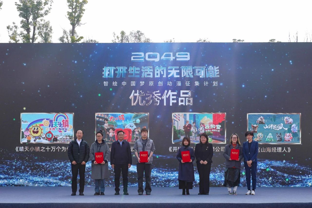 活動現(xiàn)場發(fā)布了“2049:打開生活的無限可能——智繪中國夢”原創(chuàng)動漫征集結(jié)果,為獲得優(yōu)秀作品代表頒獎;播放了璧山區(qū)動漫產(chǎn)業(yè)發(fā)展視頻,發(fā)布了璧山區(qū)動漫項(xiàng)目計劃。隨后,與會領(lǐng)導(dǎo)和嘉賓共同啟動慶祝新中國成立75周年動漫經(jīng)典大展開展,并在儀式結(jié)束后共同前往各展區(qū)參觀巡展。