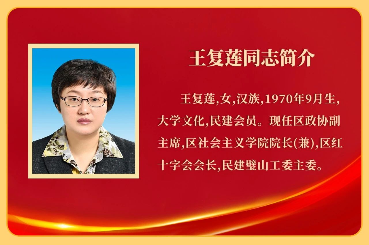政協(xié)第十一屆重慶市璧山區(qū)委員會(huì)第六次會(huì)議于2025年1月15日選舉王復(fù)蓮?fù)緸槭粚脜^(qū)政協(xié)副主席。
