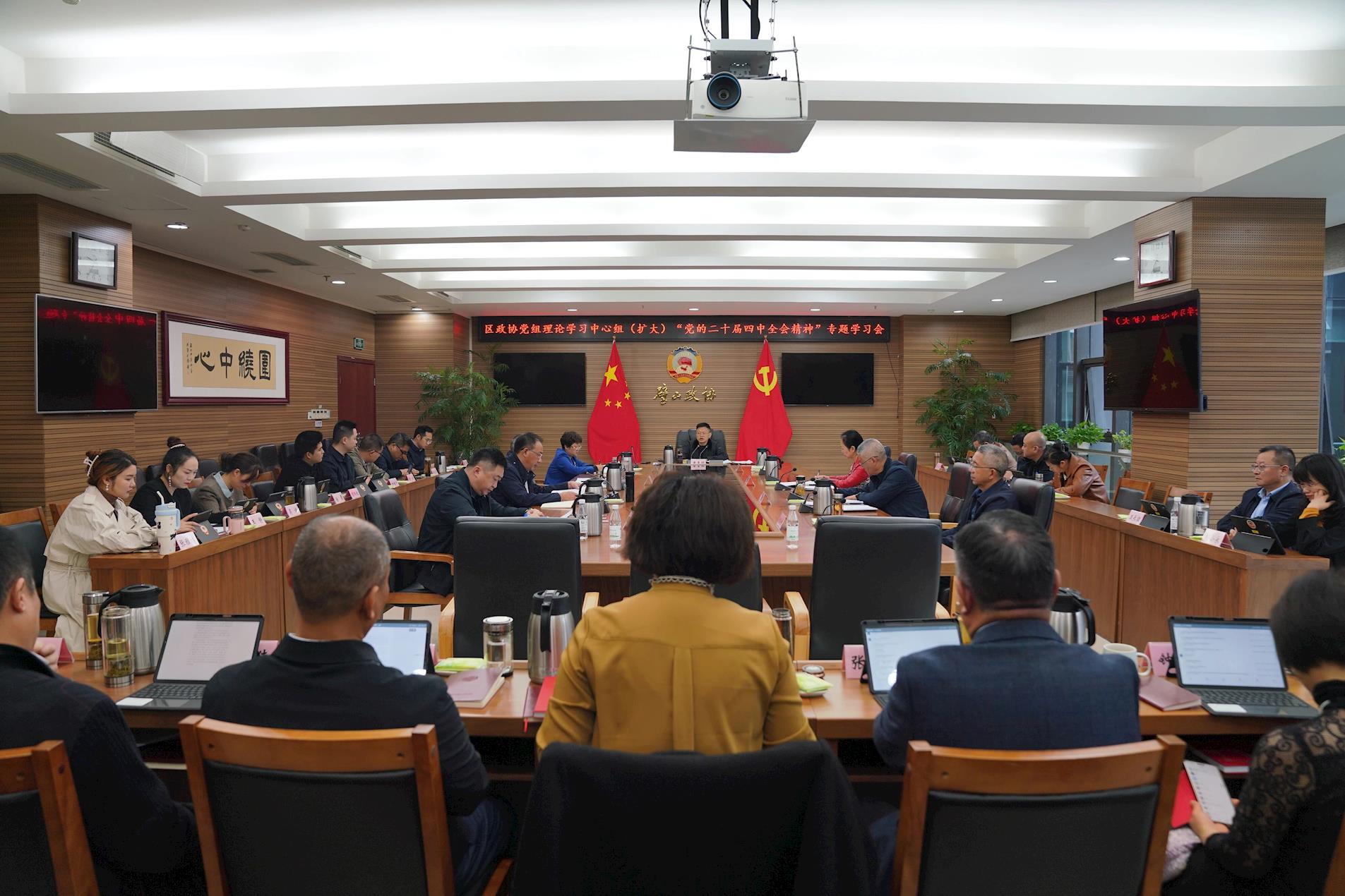10月30日,區(qū)政協(xié)黨組理論學(xué)習(xí)中心組(擴(kuò)大)專題學(xué)習(xí)會召開,深入學(xué)習(xí)貫徹黨的二十屆四中全會精神。區(qū)政協(xié)黨組書記、主席黃孝明主持會議并講話。
