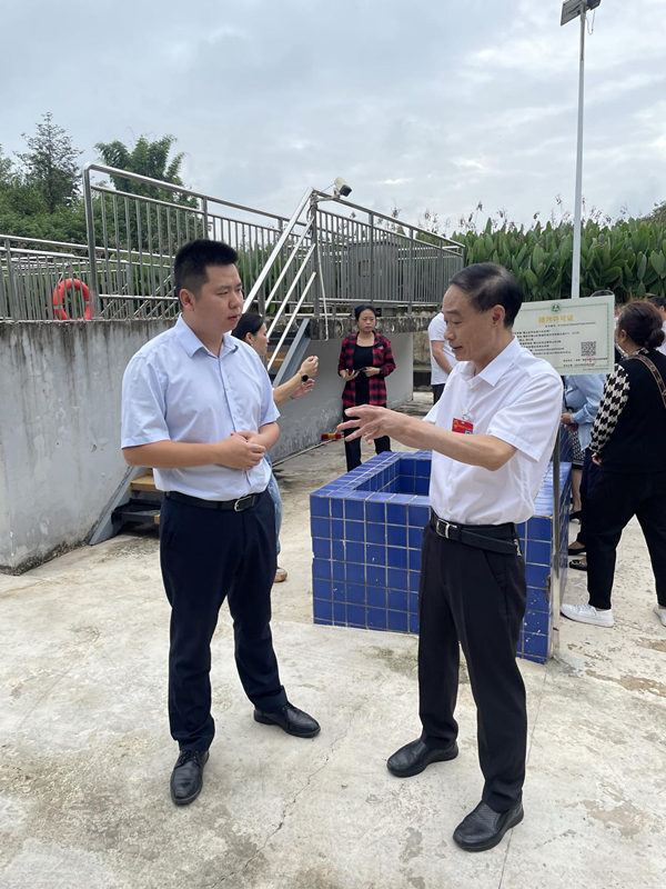 張獻強與區(qū)人大代表河邊小組全體成員一起,視察了新四村上壩河農村面源污染濕地管控情況、河邊鎮(zhèn)污水處理廠城鎮(zhèn)污水處置情況,隨后召開座談會,聽取河邊鎮(zhèn)貫徹落實《長江保護法》和《重慶市水污染防治條例》的相關情況匯報。